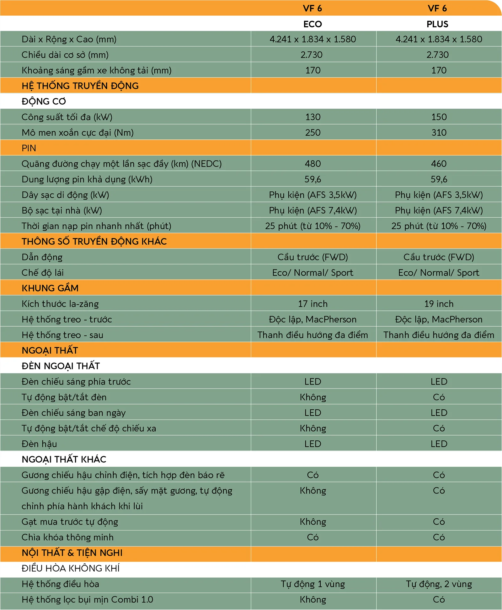 Thông số của VinFast VF 6