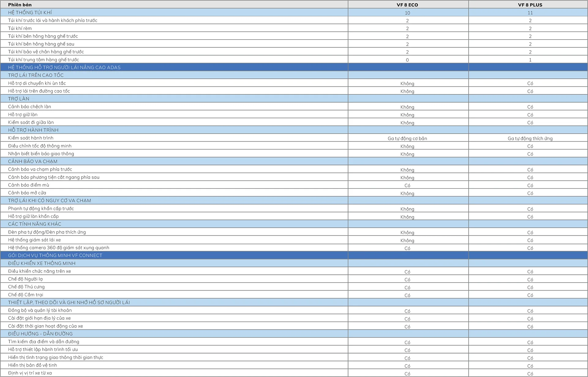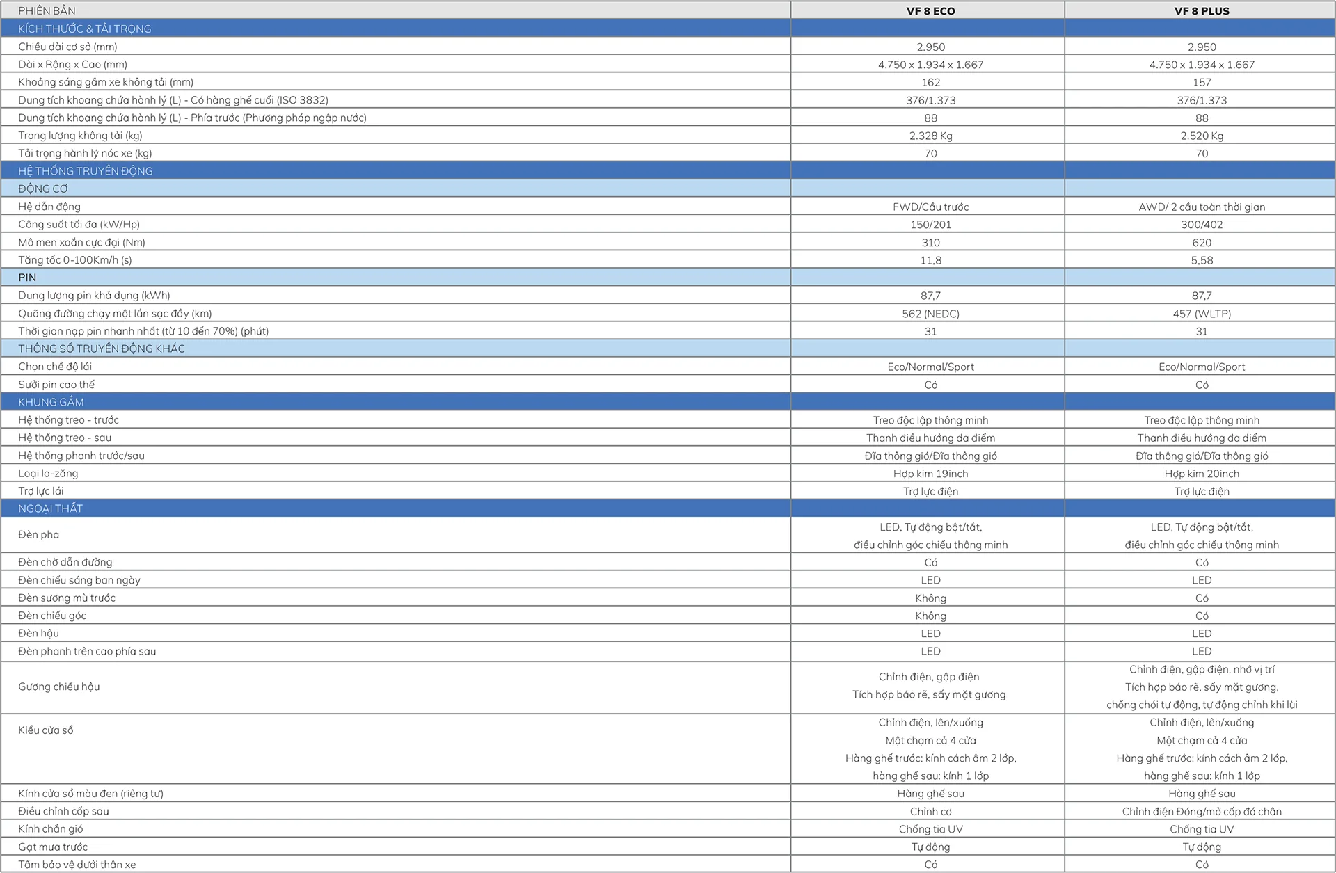 | VF 8 | Eco | Plus |